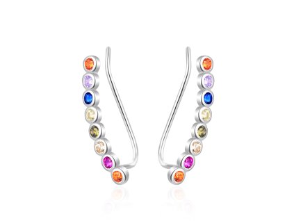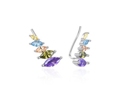 Podélné stříbrné náušnice s barevnými zirkony Elegantní stříbrné náušnice jemně lemují lalůček ucha a mají nadčasový podélný tvar. Jsou osazené barevnými zirkony, které při...