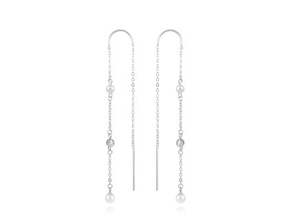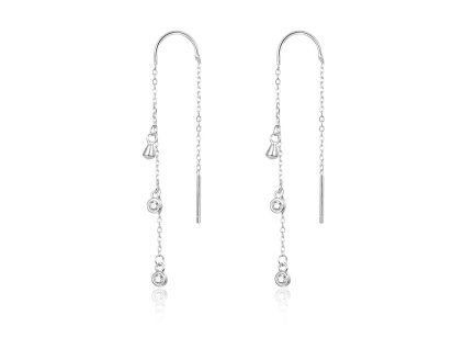 Dlouhé stříbrné náušnice se zirkony Elegantní náušnice z kvalitního stříbra jsou tvořeny dlouhými řetízky, které zdobí čiré zirkony a drobné stříbrné kuličky, jež dodávají...
