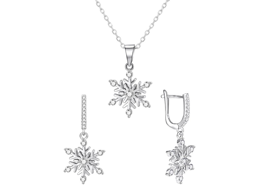 Půvabná stříbrná sada šperků sněhové vločky AGT-SET03W