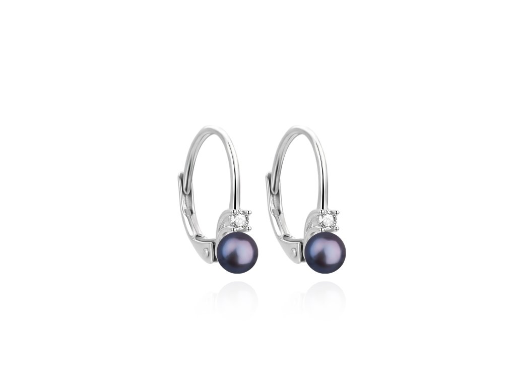 Půvabné náušnice s černou perlou a zirkonem AGUC3513P-BK