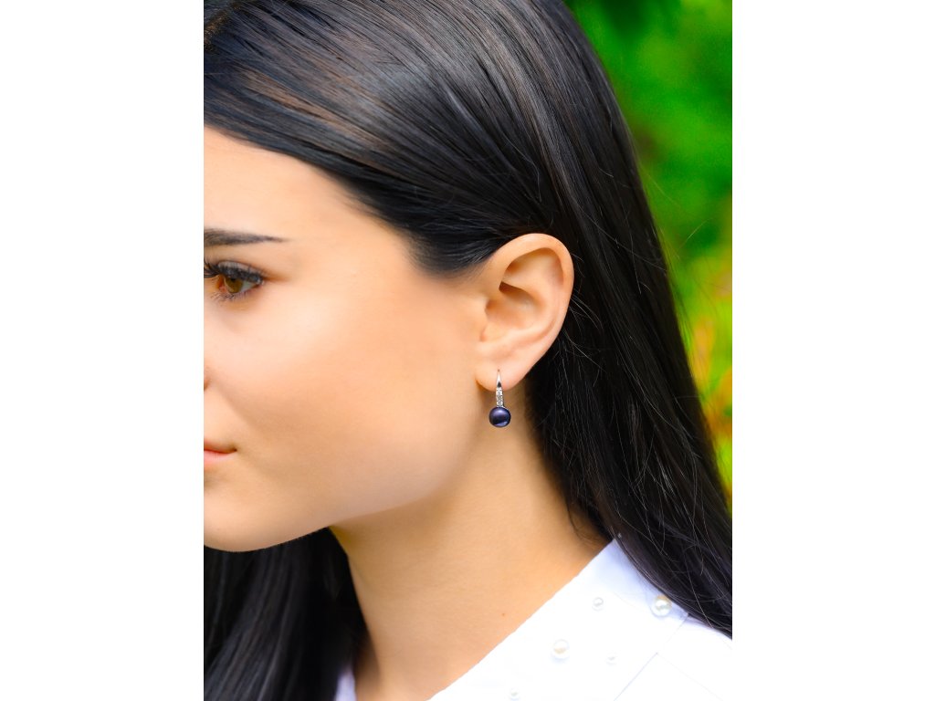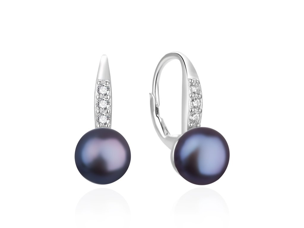 Půvabné stříbrné náušnice s černou perlou AGT-E233L-PBK