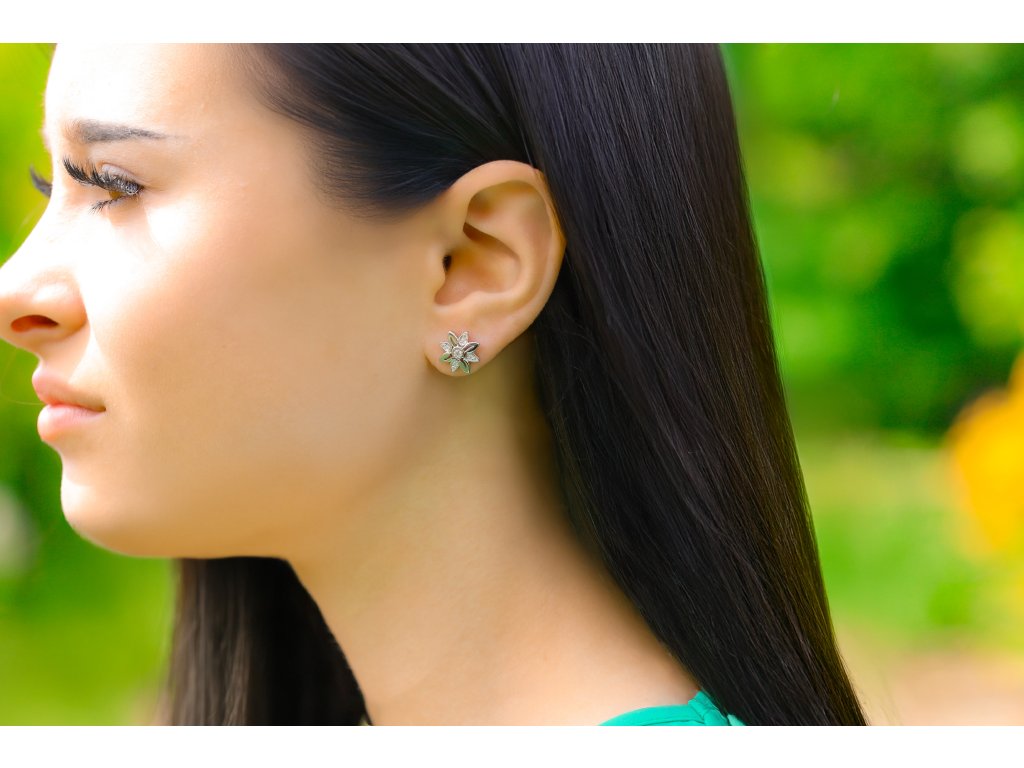Půvabné stříbrné náušnice s květinou AGT-E259PW