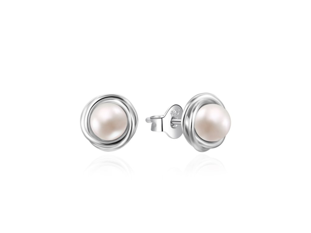 Půvabné stříbrné náušnice s pravou perlou AGT-E239P-P