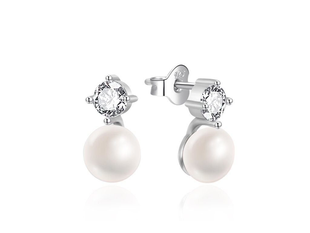 Půvabné stříbrné náušnice se sladkovodní perlou AGT-E221PW-P
