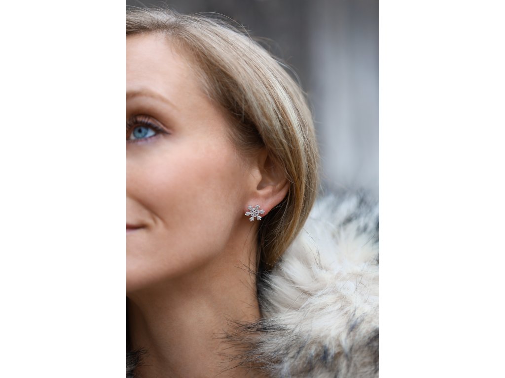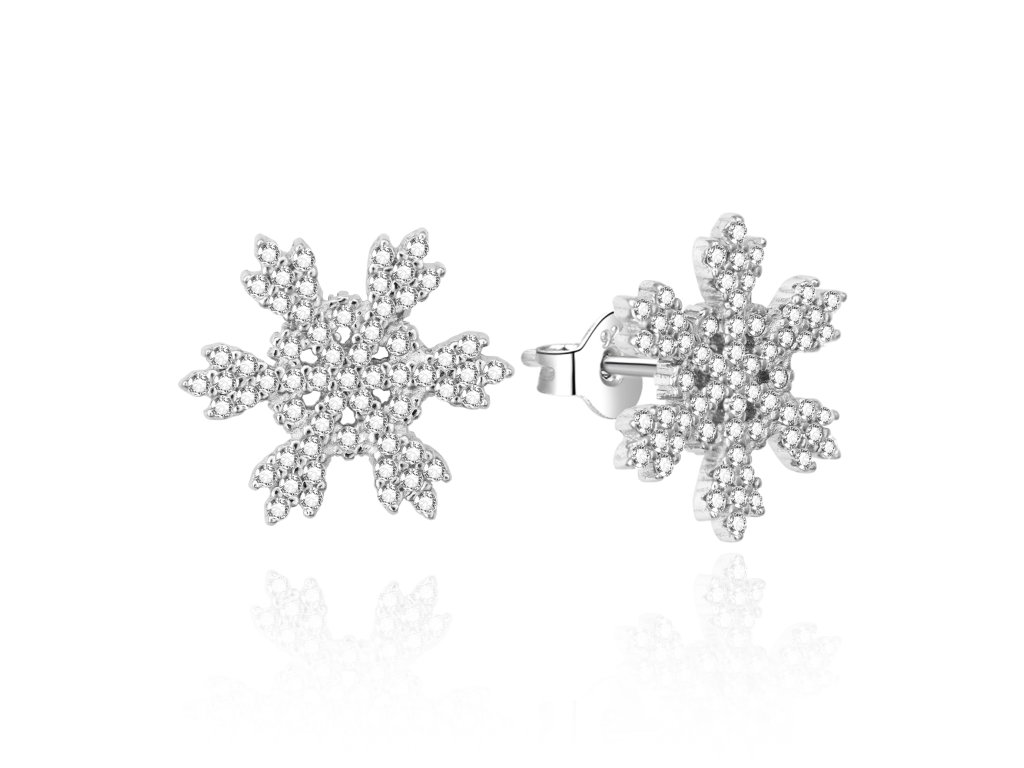Půvabné stříbrné náušnice se sněhovou vločkou AGT-E006PW