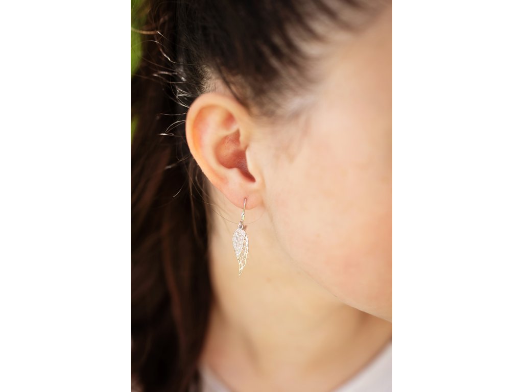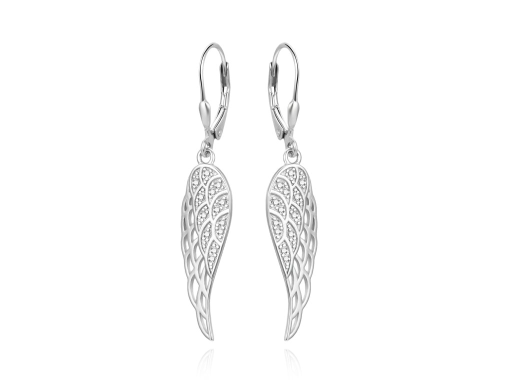 Vyrobené z kvalitního stříbra, tyto náušnice kombinují výrazný třpyt čirých zirkonů s pohodlným klapkovým zapínáním, které zabraňuje ztrátě šperku. Nadčasový design ve tvaru andělských křídel a precizní zpracování činí z tohoto elegantního doplňku šperk, který se stane oblíbenou součástí vaší sbírky a přinese jemný luxus do každodenního nošení.