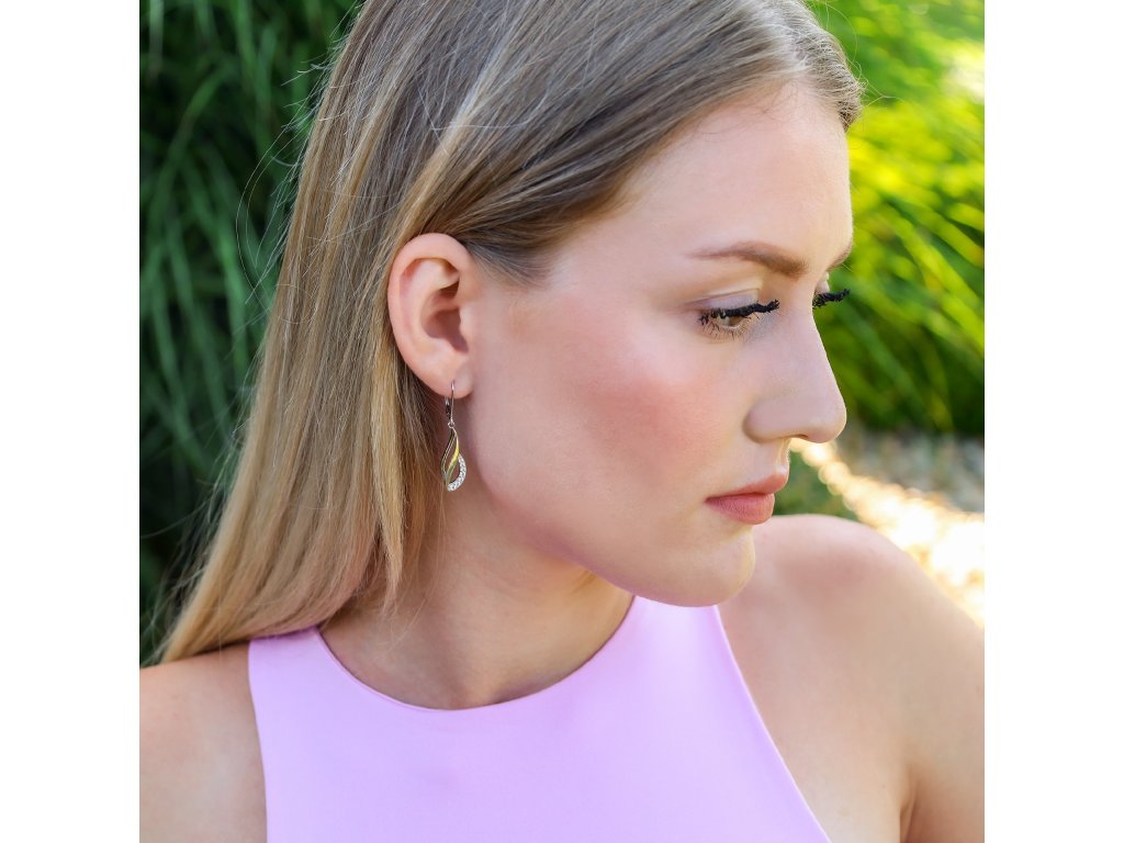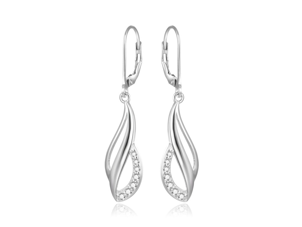 Vyrobené z kvalitního stříbra, náušnice kombinují elegantní přívěsky s třpytivými čirými zirkony. Praktické klapkové zapínání zajišťuje bezpečné nošení a zabraňuje ztrátě šperku. Nadčasový design a precizní zpracování dělají z tohoto elegantního doplňku oblíbený šperk, ke kterému se budete rádi vracet.