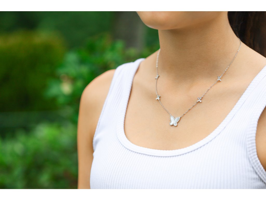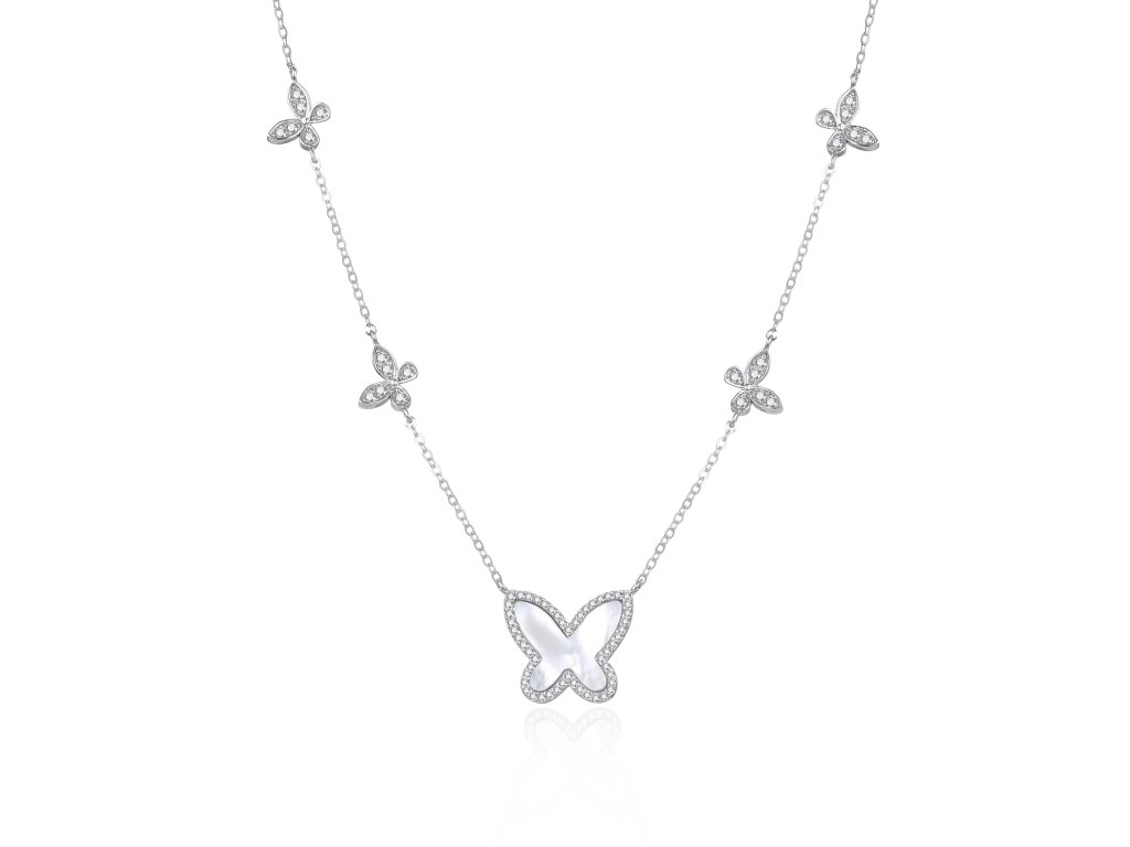 Půvabný náhrdelník s motýlím motivem, perletí a zirkony AGT-N047W