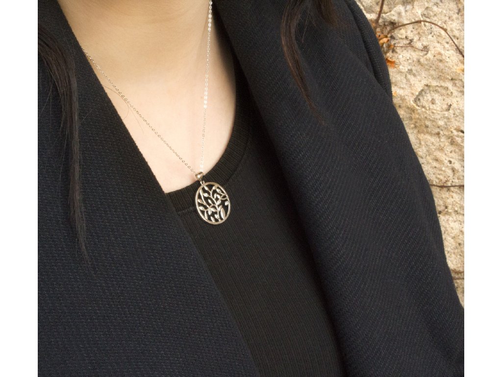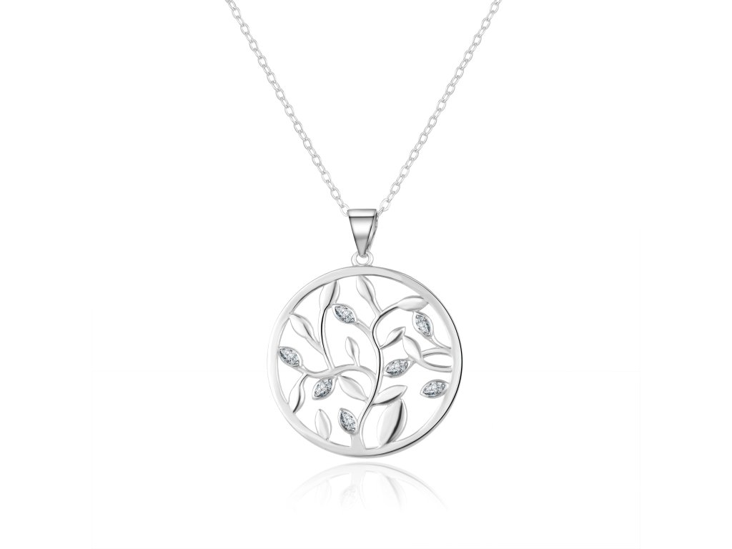 Půvabný stříbrný náhrdelník s kruhovým přívěskem a větvičkami AGS1258/47