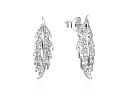 Stříbrné náušnice Listy se zirkony Elegantní náušnice s propracovaným designem lístků dodají každému outfitu jemnost a přírodní půvab. Díky třpytivým čirým zirkonům působí šperk...