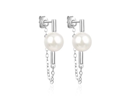 Stříbrné visací náušnice se sladkovodní perlou Jako první vás zaujmou půvabné sladkovodní perly, které dodávají náušnicím jemný a elegantní vzhled. Visací řetízek přidává šperku...