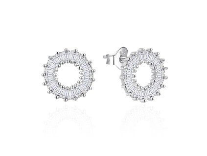 Stříbrné náušnice s čirými zirkony a kruhem Tyto náušnice zaujmou svým jemným a elegantním designem, kde precizně broušené zirkony zdobí kruh a dodávají šperku třpyt a půvab....
