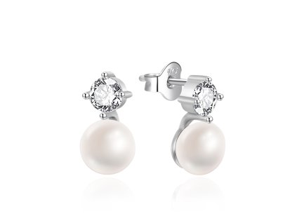 Stříbrné náušnice s perlou a třpytivými zirkony Tyto náušnice zaujmou jemným designem s pravou sladkovodní perlou uprostřed, která dodává šperku nadčasovou eleganci a něžný...
