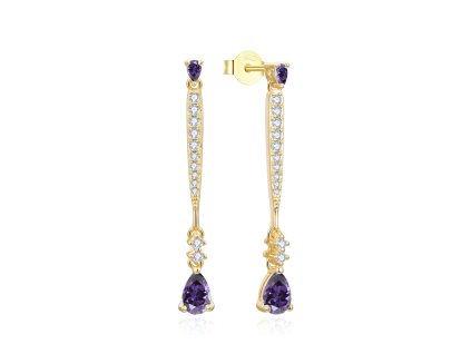 Exkluzivní pozlacené visací náušnice se zirkony Elegantní visací náušnice vyrobené ze stříbra jsou pozlacené žlutým zlatem, což jim propůjčuje luxusní vzhled. Čiré a fialové...