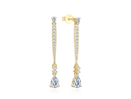 Exkluzivní pozlacené visací náušnice se zirkony Elegantní visací náušnice vyrobené ze stříbra jsou pozlacené žlutým zlatem, což jim propůjčuje luxusní a sofistikovaný vzhled....