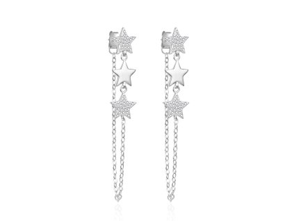 Stříbrné dlouhé náušnice Hvězdy se zirkony Elegantní stříbrné náušnice jsou zdobené drobnými hvězdičkovými ozdobami a třpytivými čirými zirkony, které při každém pohybu jemně...