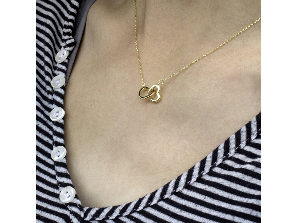 Romantický pozlacený stříbrný náhrdelník s propojenými srdíčky AGS1327/47-GOLD