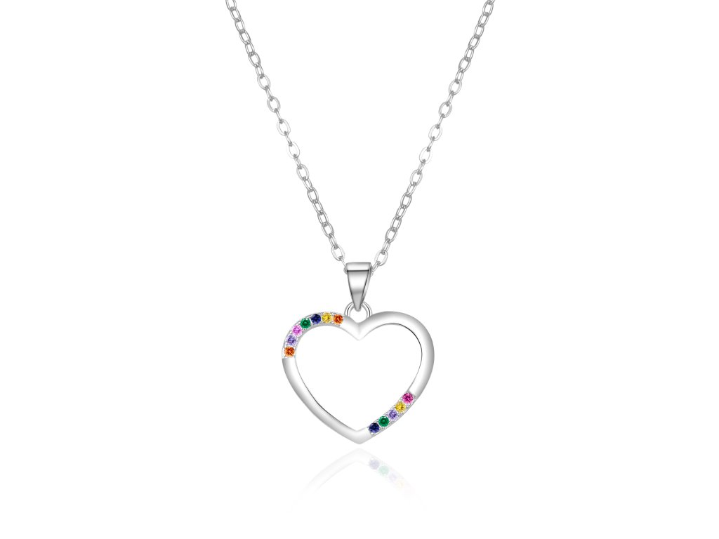 Romantický stříbrný náhrdelník s barevným srdíčkem AGT-N042C