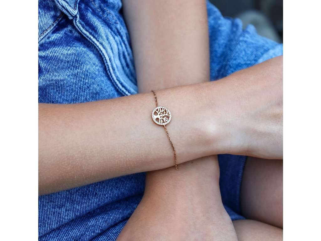 Růžově pozlacený náramek se stromem života AGB485/20-ROSE