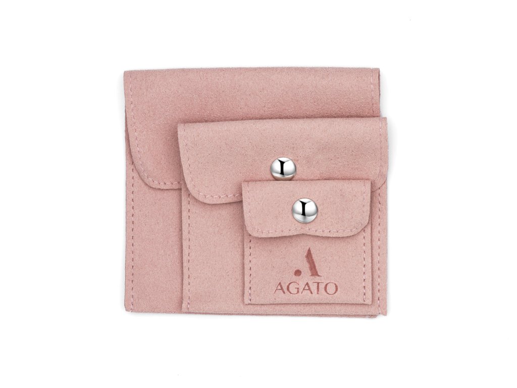 Elegantní sáček z jemného mikrovlákna s vyraženým logem AGATO je ideální pro uložení a ochranu vašich šperků. Díky měkkému povrchu chrání před poškrábáním a praktické zapínání na patent udrží obsah bezpečně uvnitř.