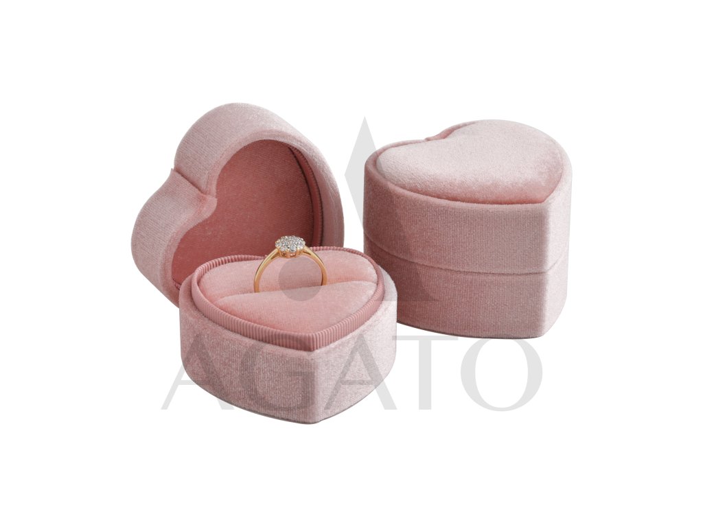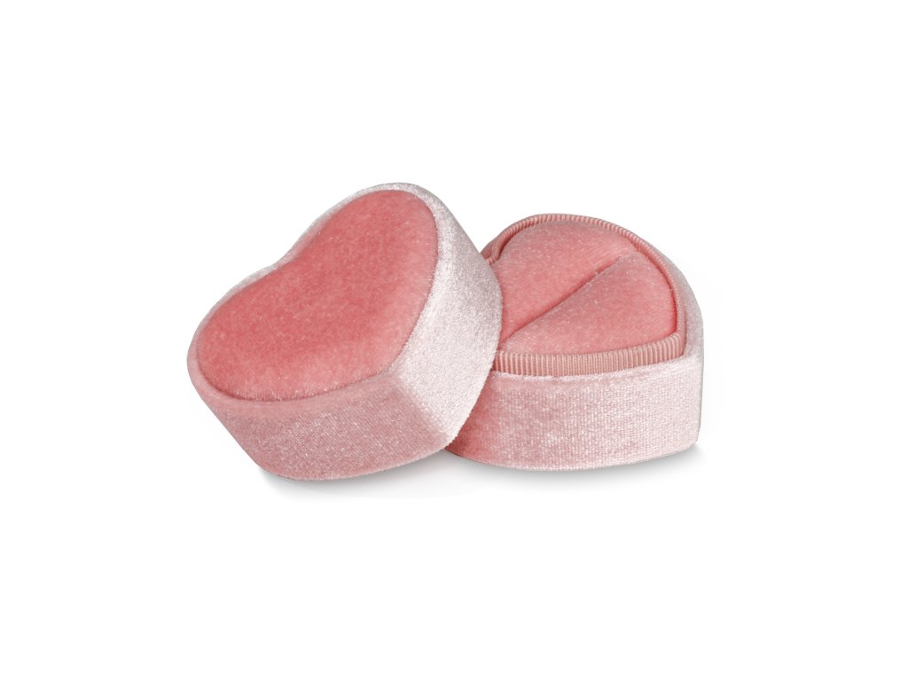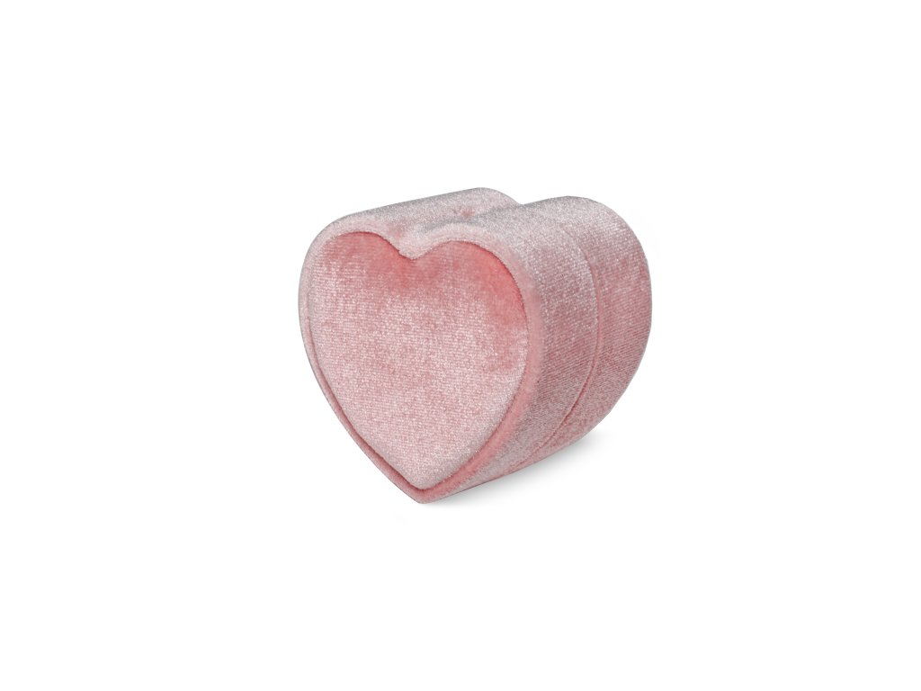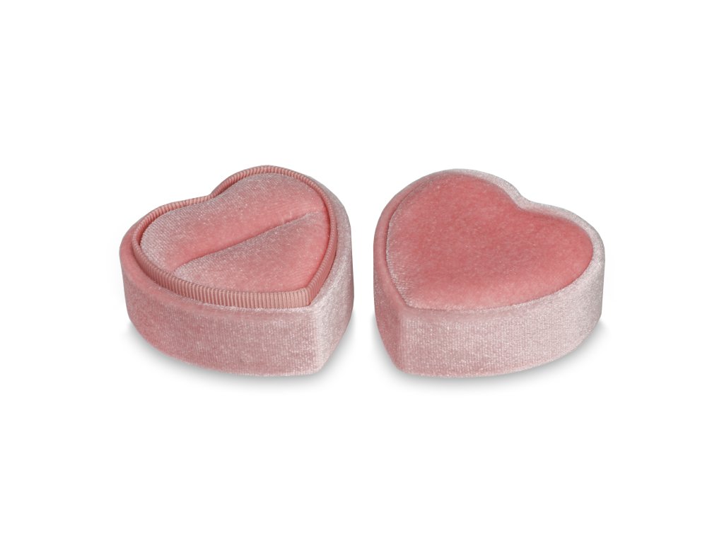 Romantická růžová sametová krabička ve tvaru srdce, určená pro prsten nebo drobné náušnice. Má velmi luxusní a láskyplný vzhled. Krabička bude skvělým společníkem například při žádosti o ruku.