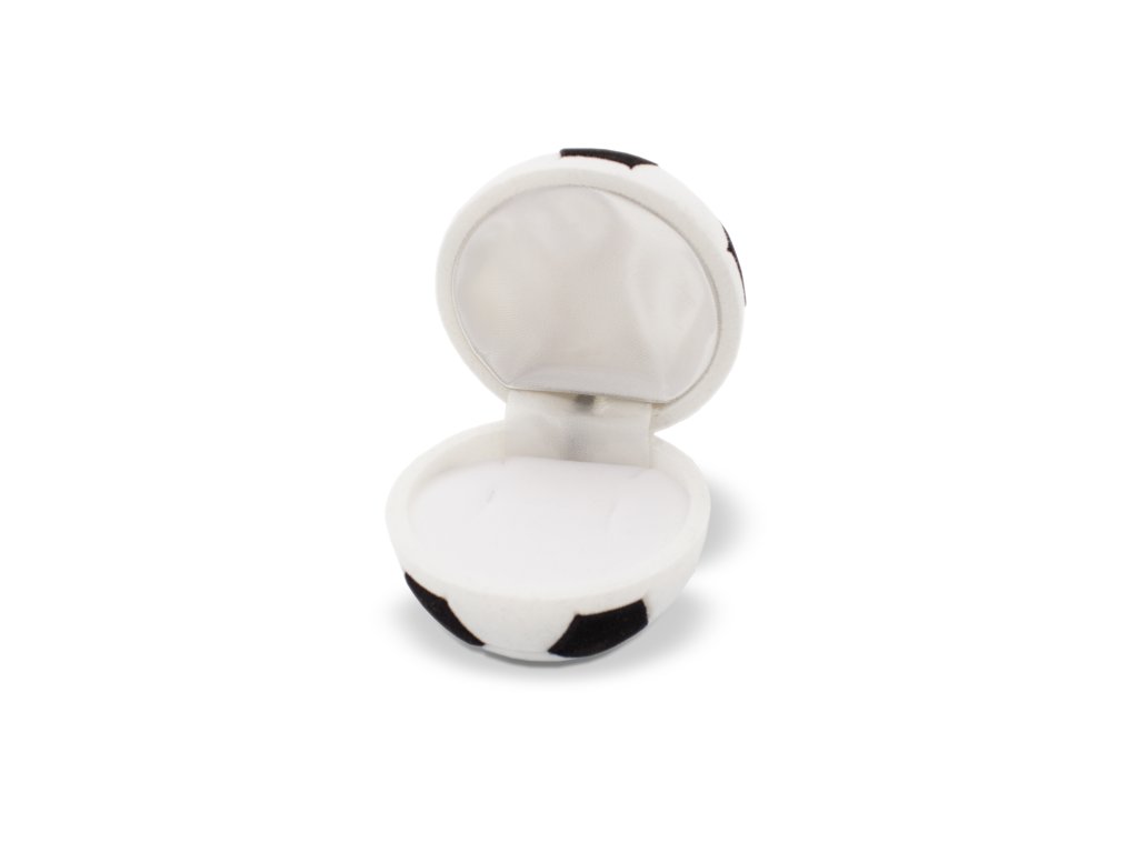 Kulatá dárková sametová krabička FOTBALOVÝ MÍČ je ideální zejména na prstýnek, ale dobře poslouží i na drobné náušnice. Vnitřní strana víčka je potažená bílým saténem, poduška je rovněž bílá.