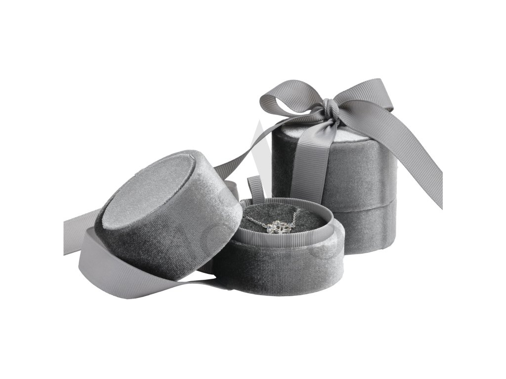 Krásná šedá sametová krabička se stužkou, určená pro řetízek. Má velmi luxusní vzhled.