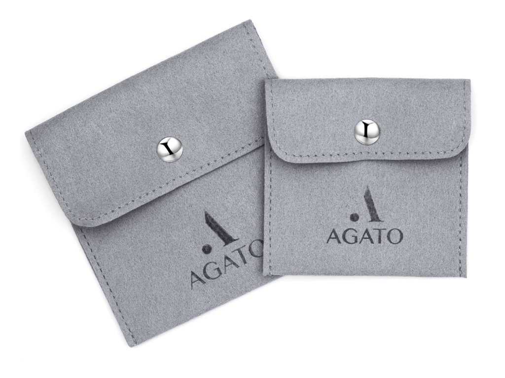 Elegantní sáček z jemného mikrovlákna s vyraženým logem AGATO je ideální pro uložení a ochranu vašich šperků. Díky měkkému povrchu chrání před poškrábáním a praktické zapínání na patent udrží obsah bezpečně uvnitř.
