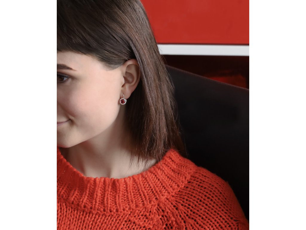 Slušivé stříbrné náušnice s červenými zirkony AGUC1158