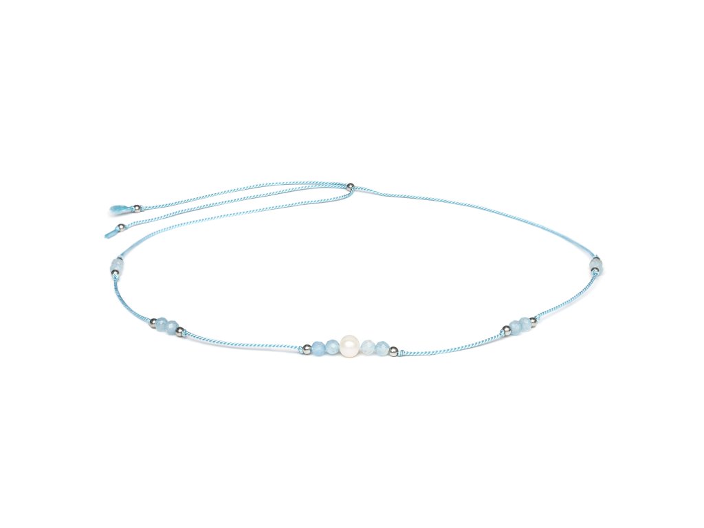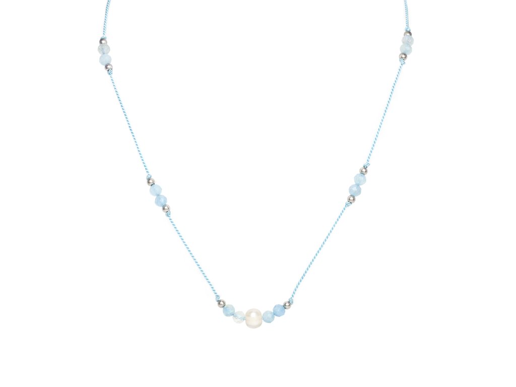 Šňůrkový náhrdelník s akvamarínem a říční perlou HE06K3S-LB