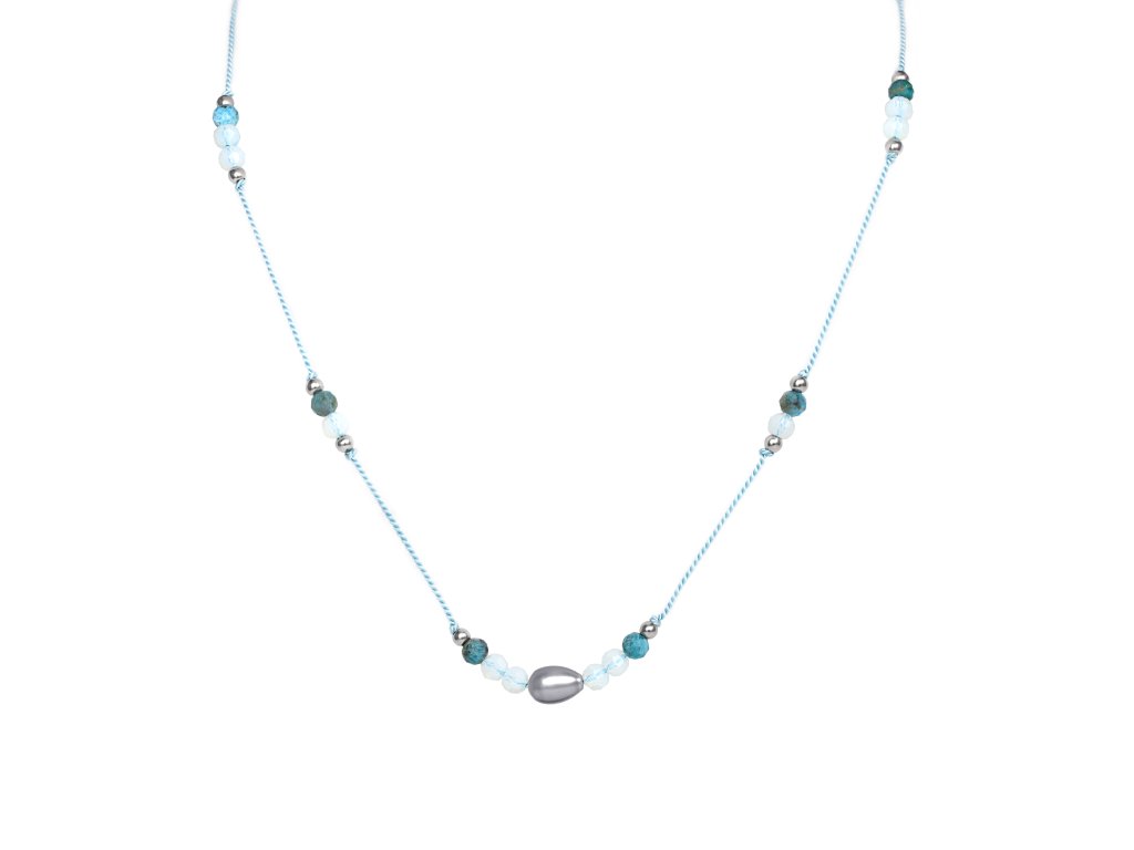 Šňůrkový náhrdelník s apatitem, opalitem a říční perlou HE08K3S-LB