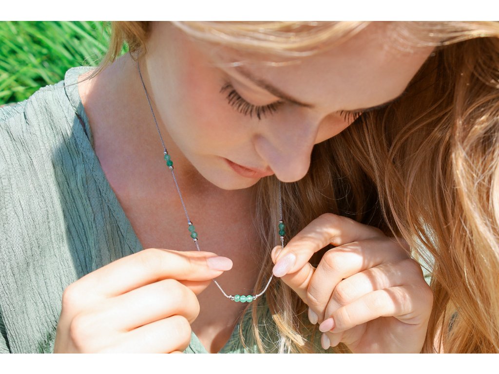 Avanturín je známý jako kámen štěstí a nových začátků. Přináší vnitřní klid, podporuje kreativitu a dodává odvahu pustit se do nových výzev. Nejlépe rezonuje se znamením Býka, Raka a Střelce. Díky posuvné sponě si můžete náhrdelník pohodlně nastavit od 32 do 60 cm, takže jej snadno sladíte s jakýmkoli outfitem, od ležérního po elegantní.