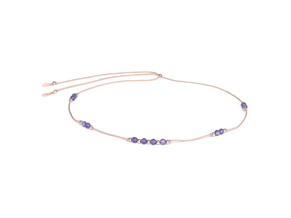 Ametyst je kámen moudrosti, ochrany a duchovní rovnováhy. Pomáhá uvolňovat stres, podporuje soustředění a přináší pocit klidu. Je spojen se znamením Ryb, Střelců a Panny, pro které je silným průvodcem v každodenním životě. Díky posuvné sponě si délku náhrdelníku snadno nastavíte od 32 do 60 cm, takže se skvěle přizpůsobí jak běžnému nošení, tak i slavnostním příležitostem.