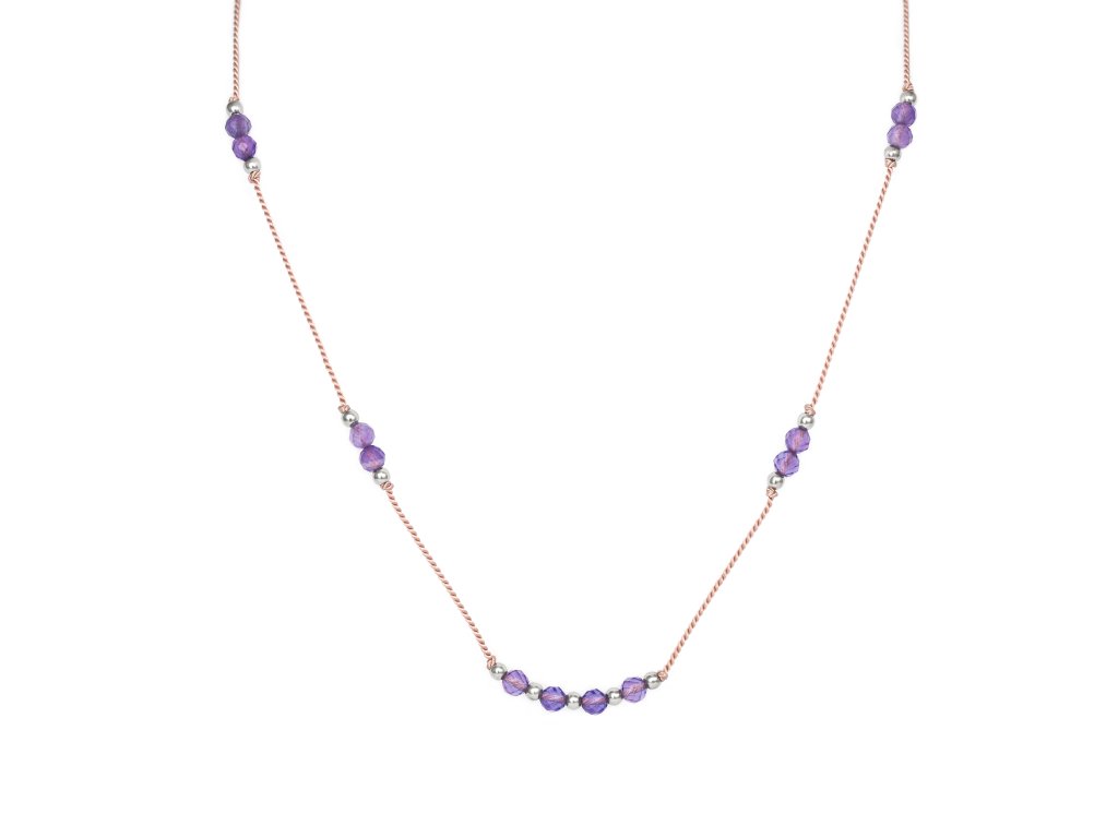 Šňůrkový náhrdelník s korálky ametystu HE33K3S-LP