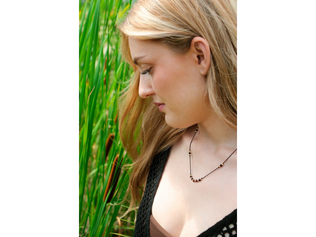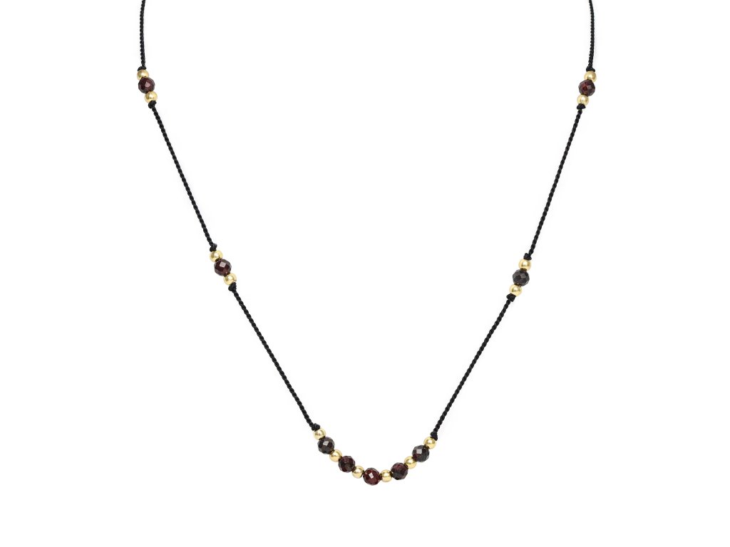 Šňůrkový náhrdelník s korálky granátu HE21K3G-BK
