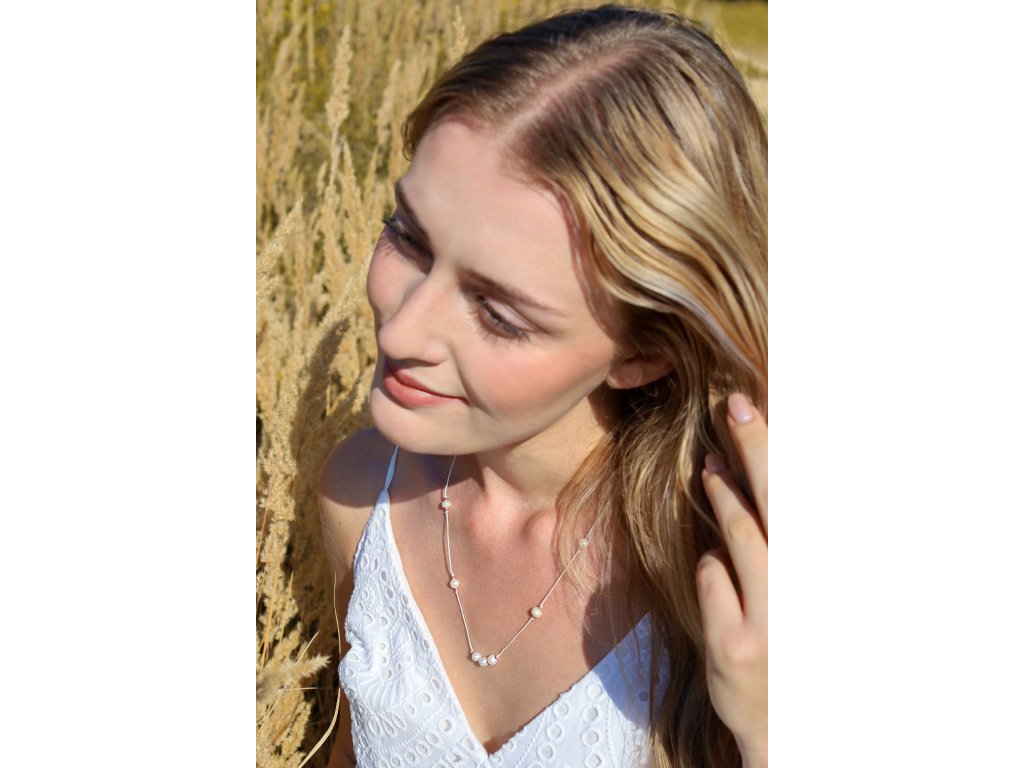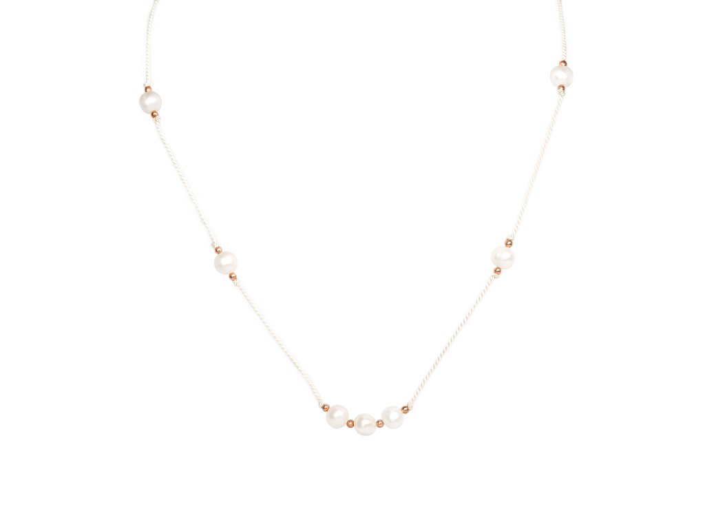 Šňůrkový náhrdelník s perlami HE03K3RG-WH