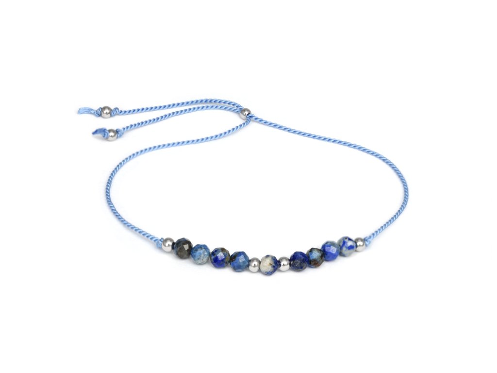 Šňůrkový náramek na nohu s korálky lapis lazuli HE23N3S-BL