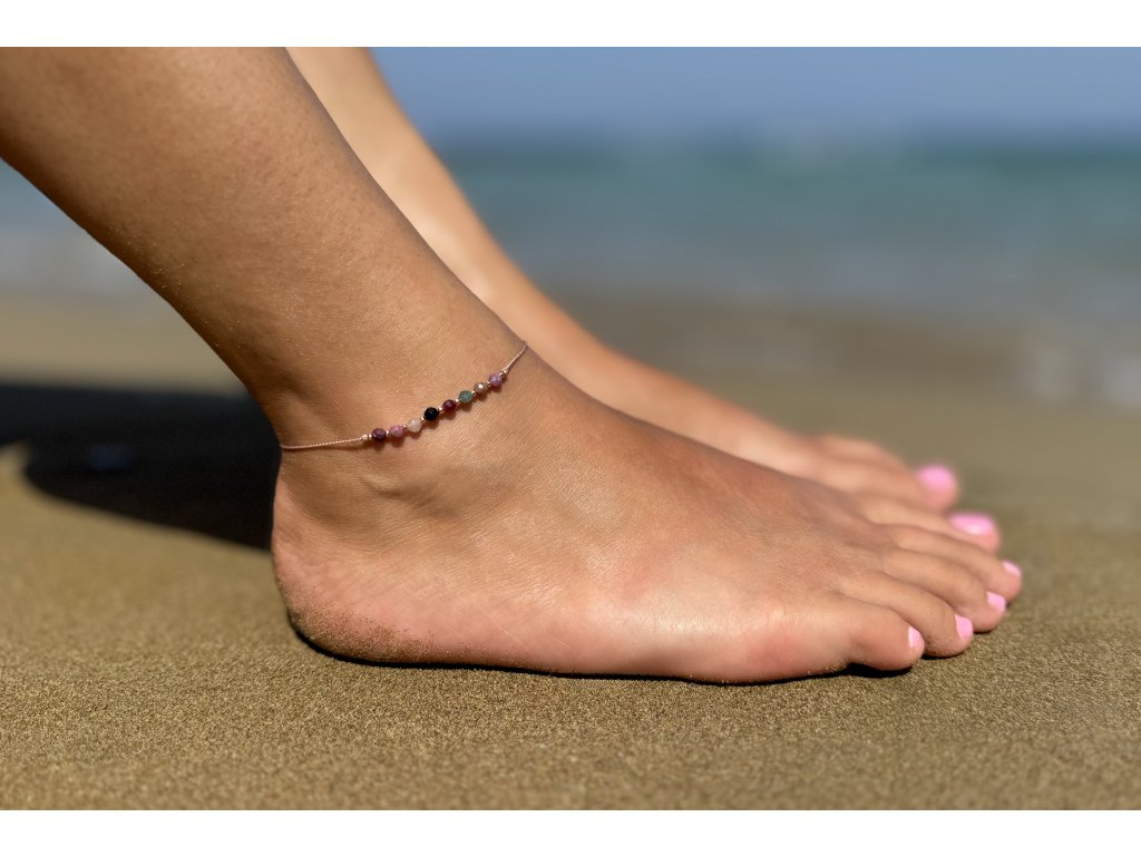 Šňůrkový náramek na nohu s melounovým turmalínem HE30N3RG-LP