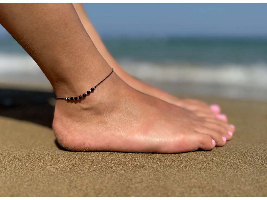 Šňůrkový náramek na nohu s onyxem HE32N3RG-BK