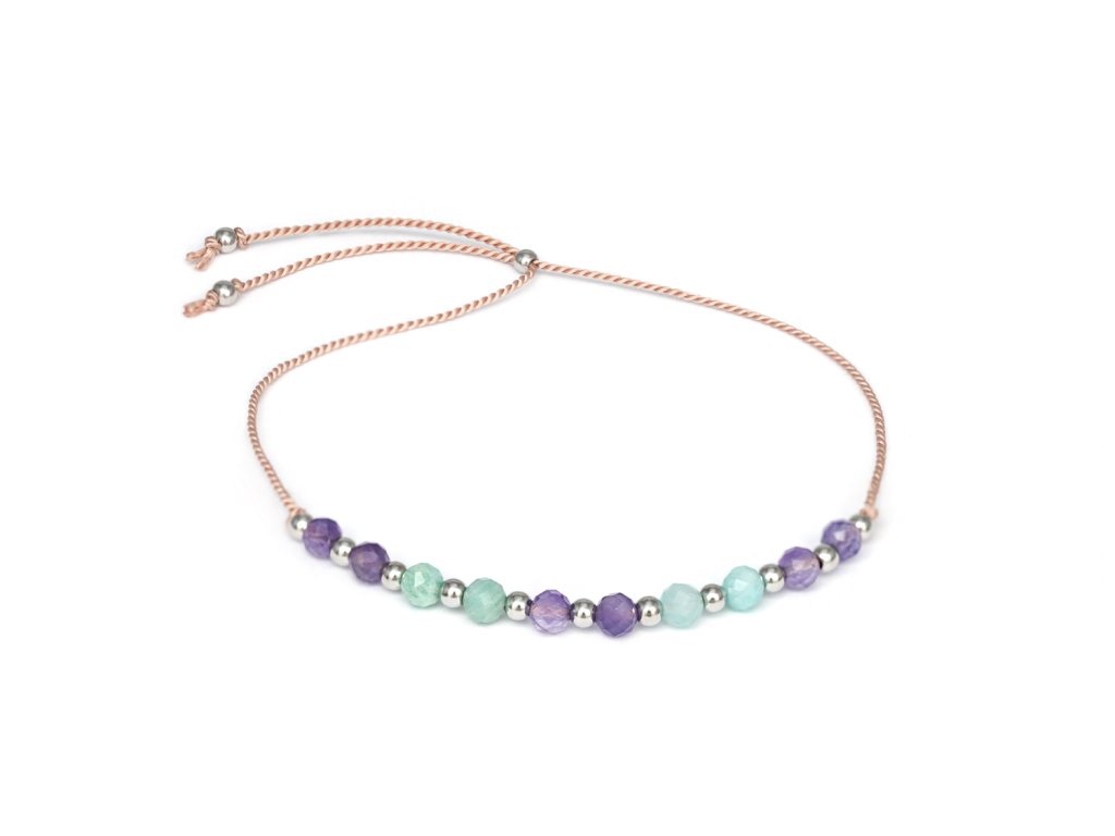 Šňůrkový náramek s amazonitem a ametystem HE25R3S-LP