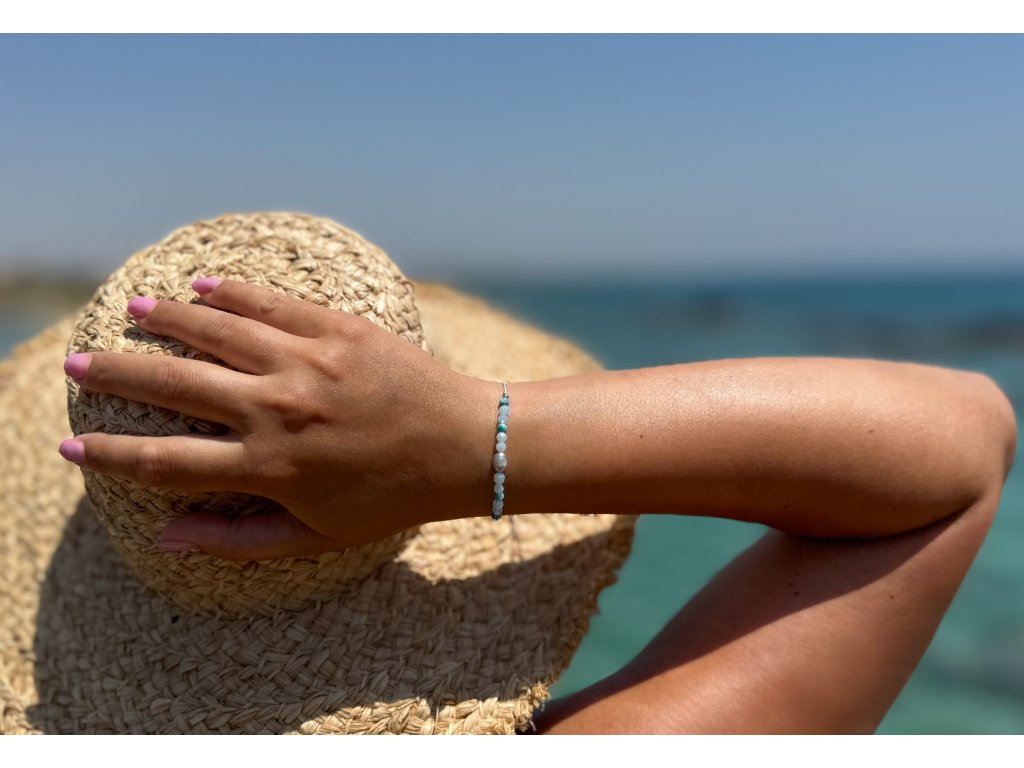 Šňůrkový náramek s apatitem, opalitem a říční perlou HE08R3S-LB