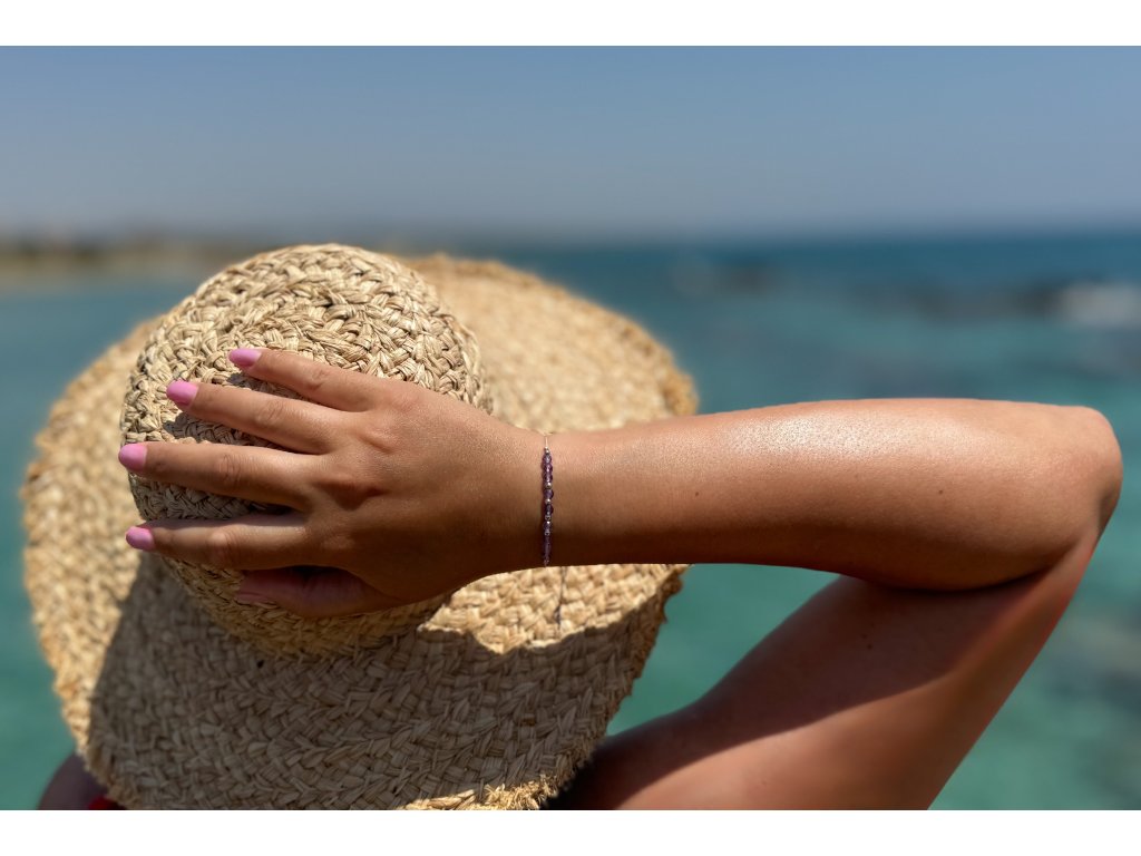 Šňůrkový náramek s korálky ametystu HE33R3S-LP
