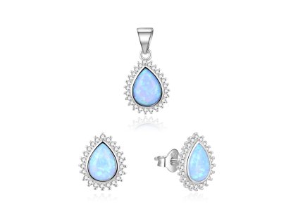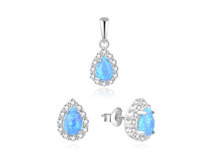 Elegantní souprava šperků s modrými opály Tato souprava z kvalitního stříbra obsahuje přívěsek a peckové náušnice, jejichž dominantou jsou jemné modré syntetické opály. Drobnými...