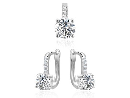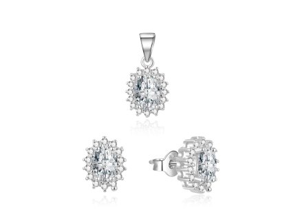 Stříbrná souprava šperků se zirkony Souprava obsahuje přívěsek a peckové náušnice vyrobené z vysoce kvalitního stříbra, které zajišťuje dlouhou životnost a nadčasový vzhled....