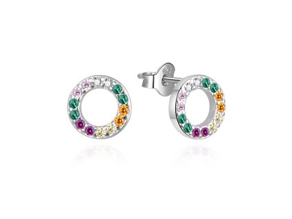 Hravé stříbrné peckové náušnice Kroužky se zirkony Tyto náušnice zaujmou veselým designem malých kroužků, který dodává šperku barevný a hravý akcent. Jemné barevné zirkony...
