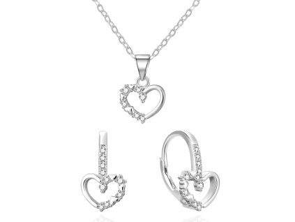 Romantická stříbrná souprava šperků Srdíčka Souprava z velmi kvalitního stříbra obsahuje náhrdelník a peckové náušnice s něžným srdíčkovým designem. Čiré zirkony jemně osazují...