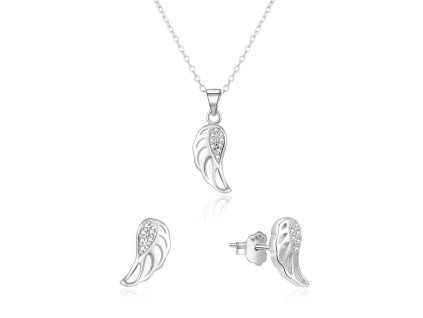 Stříbrná souprava šperků Andělská křídla Souprava z velmi kvalitního stříbra zahrnuje náhrdelník a náušnice s designem něžných andělských křídel. Čiré zirkony dodávají šperkům...