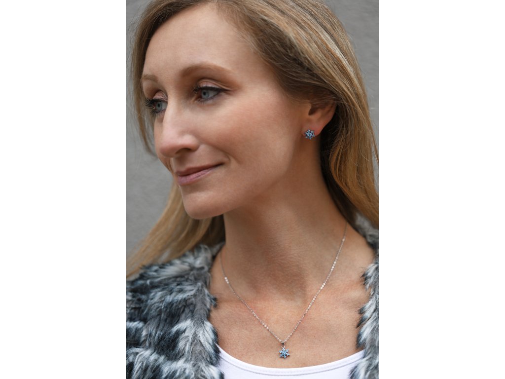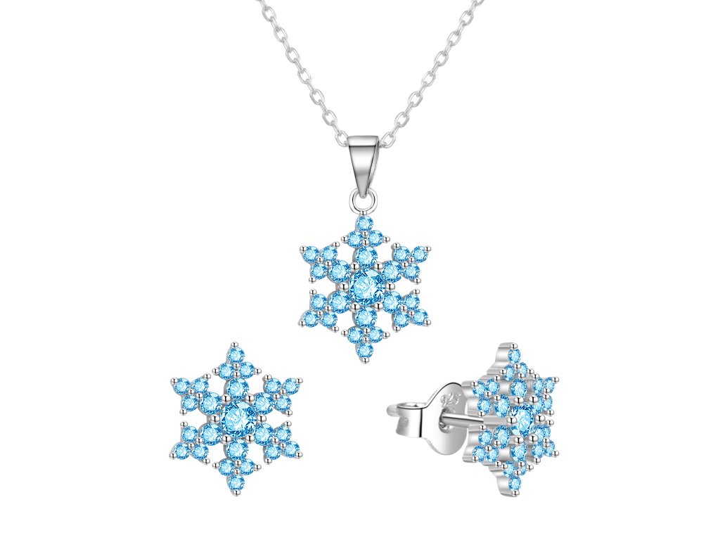 Stříbrná sada šperků sněhové vločky s modrými zirkony AGT-SET02LB