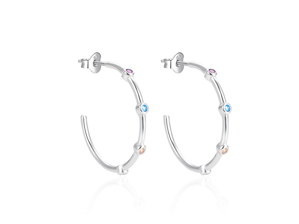 Stříbrné kruhové náušnice s barevnými zirkony AGT-E067PC