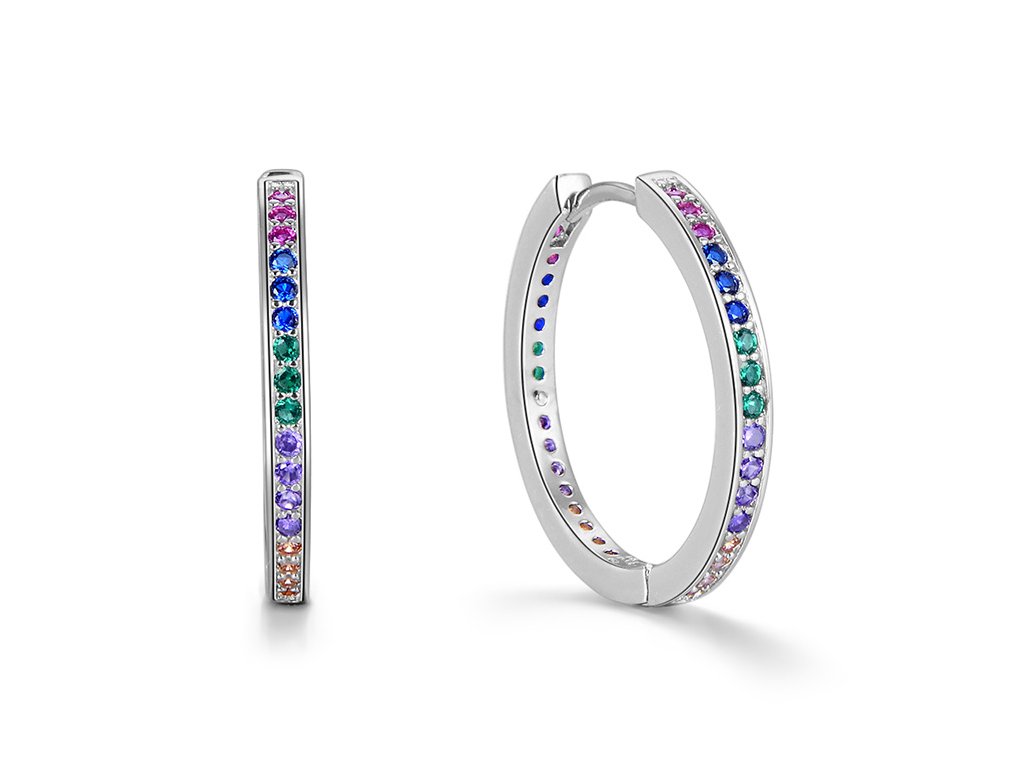 Stříbrné kruhové náušnice s barevnými zirkony AGUC2236